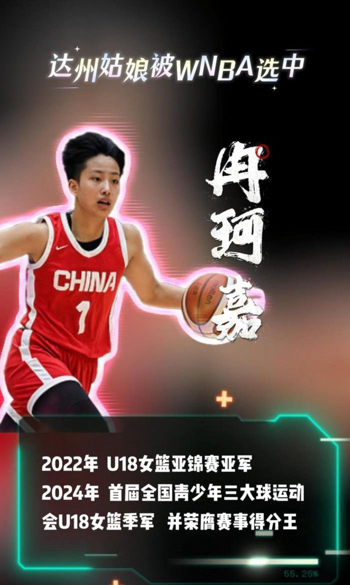 今年4月14日,冉珂嘉参加2025-2026赛季WCBA总决赛,其所在的四川蜀道远达女篮在主场以95比61大胜山西竹叶青酒女篮。也是在当天,冉珂嘉获得在WNBA选秀中被亚特兰大梦想队选中的消息.