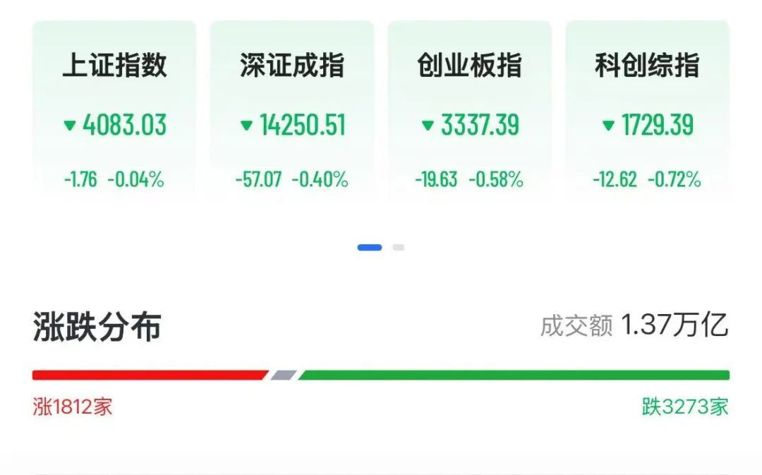 3月17日,A股市场早盘冲高回落,三大指数均翻绿。截至午盘,沪指跌0.04%,深成指跌0.4%,创业板指跌0.58%,科创综指跌0.72%。盘面上热点较为杂乱,全市场超3200只个股下跌。